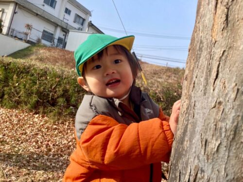昨日後ろに隠れて「ばあ!」とかくれんぼを楽しむお友だち![]()