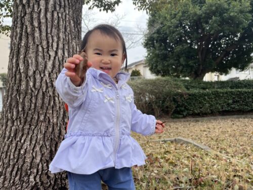 葉っぱや木の枝を拾って嬉しそうに見せてくれましたよ![]()