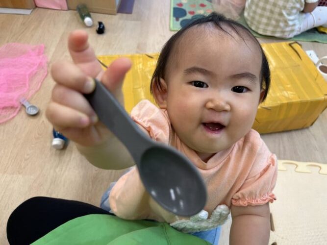 保育者に「あーん😋」としてくれました![]()