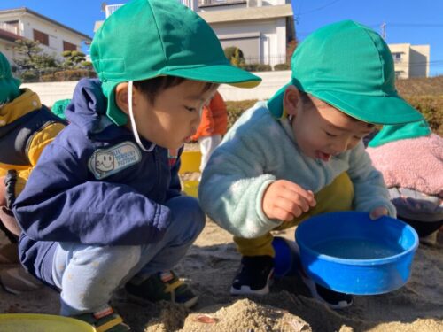 砂場でケーキを作って遊ぶ姿がありましたよ![]()