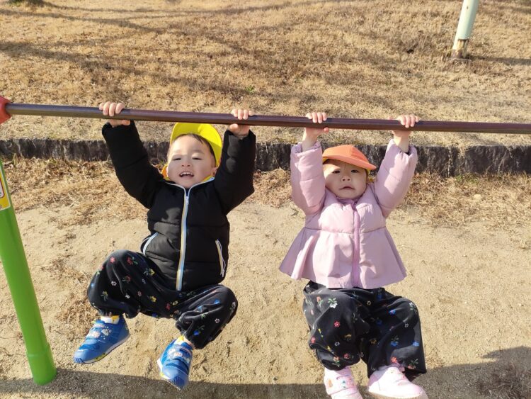 あひるさんは植田山公園に行きました!「シーソー、ガッタン、ゴットんしてもおしり痛くないよ」とニコニコ笑顔のお友だち😊