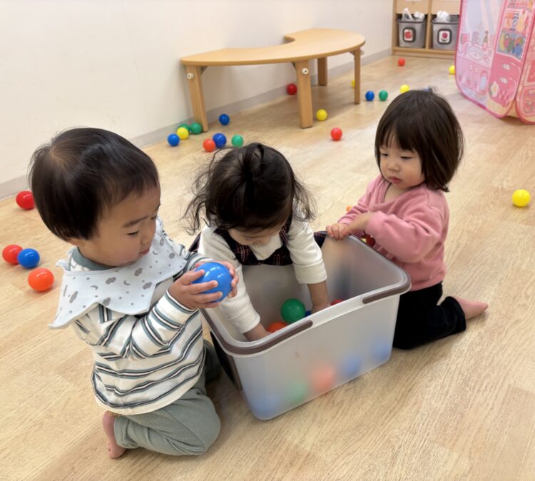 ボールは何色がいいかな😊仲良く3人で決めているようです