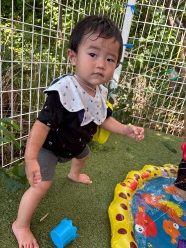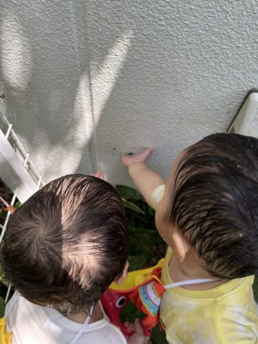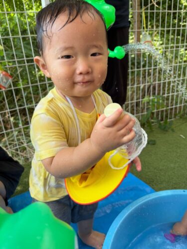 みんなで仲良くお水遊びを楽しんでいると、小さなお友だちがやって来てくれました❣️