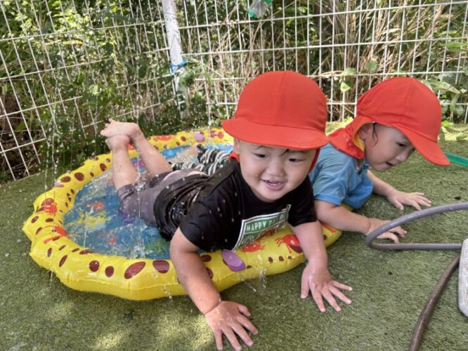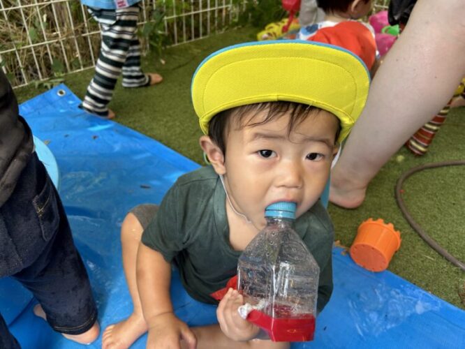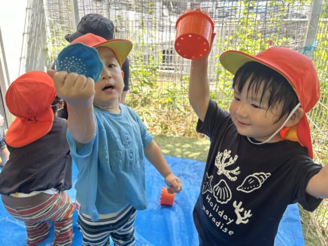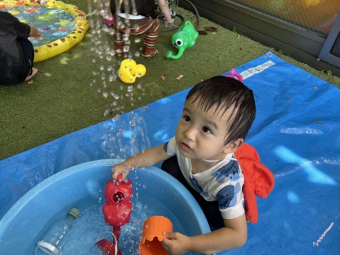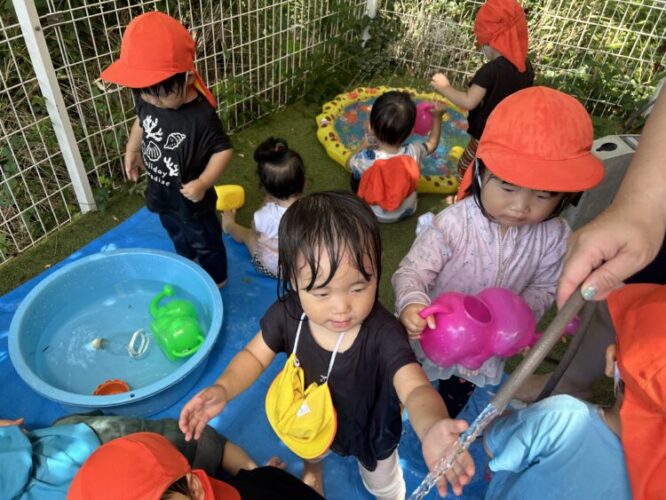 保育者の話をしっかりと聞き、次はお水遊びへレッツゴー💨💦
