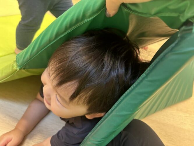 今日は、保育室を分けて、運動遊びコーナーとゆったりと遊べるコーナーの2つに分けて遊びました!!