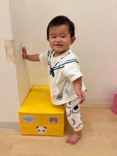 ニコニコでタッチ!!!🌟どんどん立つことが上手になっていて、少しずつの成長がとても嬉しいです☺️