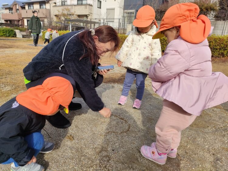 今日は寒いね🌬️「先生あんぱんまん書いてー」みんなで集中して見つめます