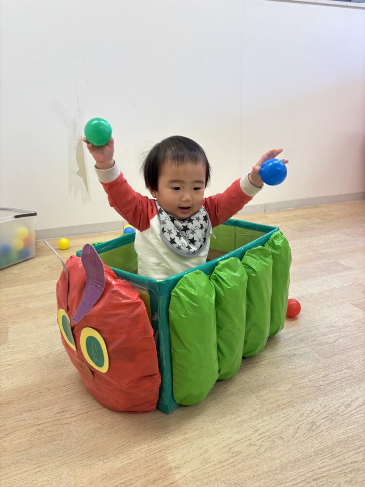 あおむし号にレッツゴー🚞カラーボールも上手にもてるよ〜🥎😍