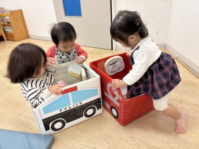 今日はひよこさんはお部屋で過ごしました🐥パトカー🚓や救急車🚑乗れるよ〜順番こにみんなで仲良く交代します🥰