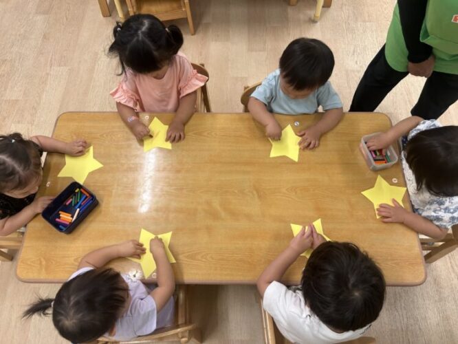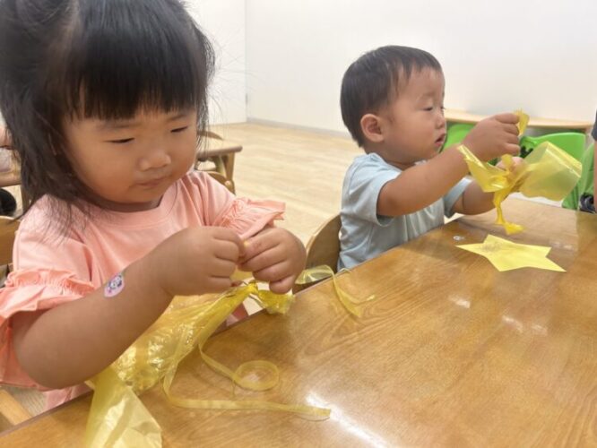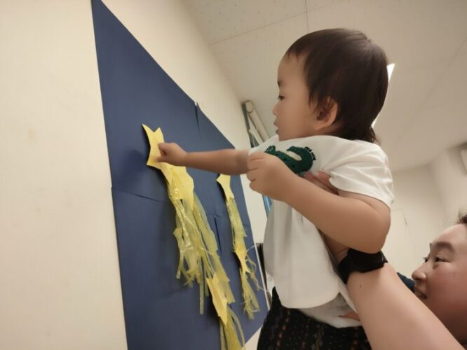 身体測定の後は、7月の壁面製作をしました!今月は流れ星🌠