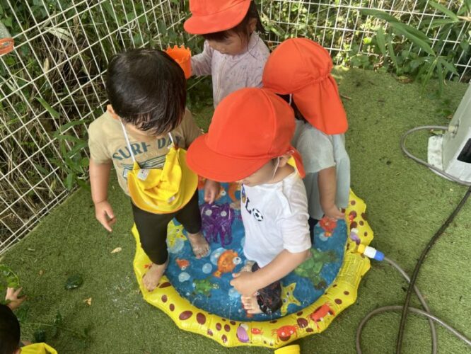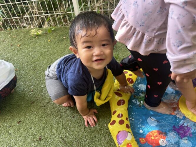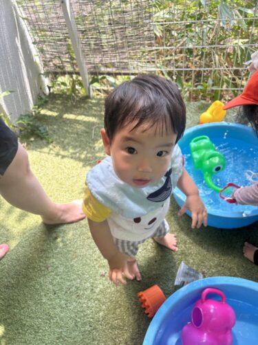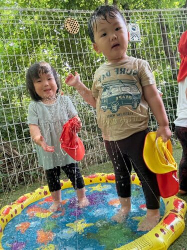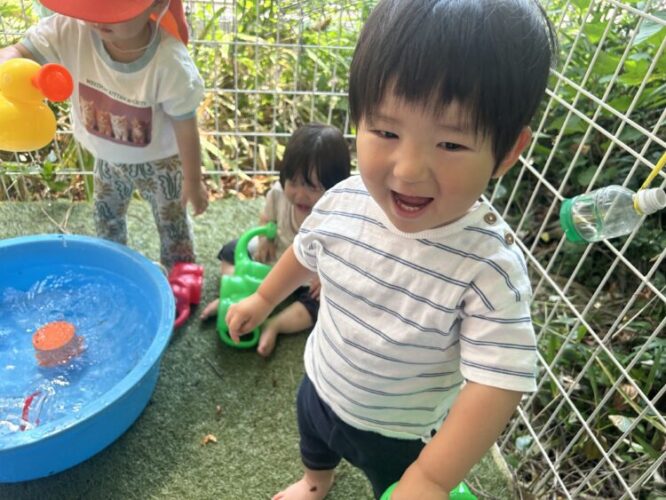 はじめはお水遊びに恐怖心があったお友だちも盛り上がっている声を聞いて、参加することができました✨