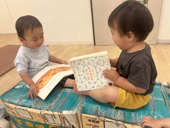 こんな可愛らしい姿も👀だいすきな絵本を持って読み聞かせごっこをしていました☺️