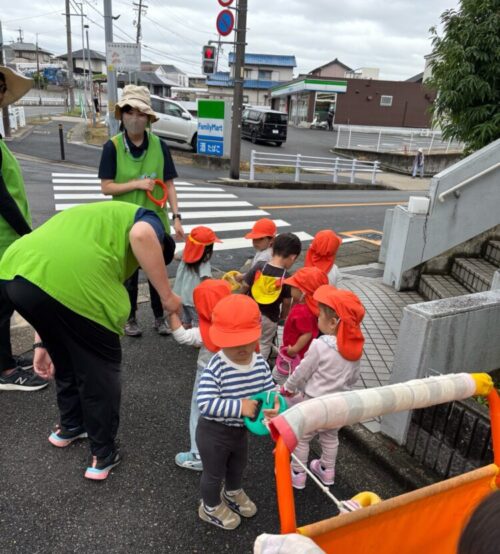 いざ出発🛫みんなきちんとお散歩ロープを持って歩くことができるようになりました👏赤信号で止まる時も「赤❗️赤‼️」と教えてくれます👍