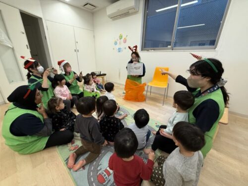 今日は待ちに待ったクリスマス会🎄お急ぎで朝の準備を済ませて、ひよこ組さんのお部屋へお引越し💨「サンタさん来るかな❓」とソワソワ☺️