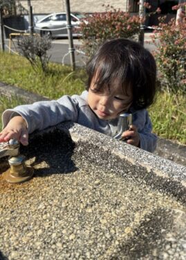 パンダさんに乗った後は、水飲み場まで遊びに行きました⛲️蛇口に興味津々のひよこ組🐣だんだんと活動範囲が広がっていることに成長を感じます☺️