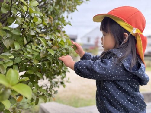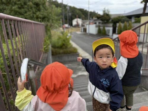 「赤色あった‼️せんせー‼️」と元気な声で呼ぶ声が👀赤い実を両手にしっかり持ってカメラに向かって見せてくれました📸