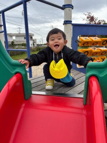 すべり台に到着✨両手でしっかり持って、上手にすべれるようになりました👏