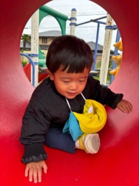 大好きなすべり台🛝赤いトンネルをくぐって…