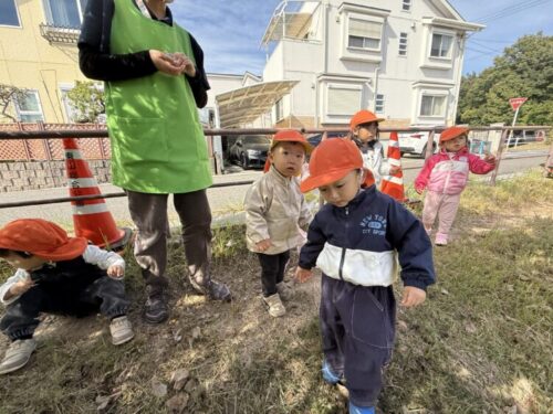 「ねぇねぇ、あっちにベロベロおばけいたよ‼️」「ベロベロいるよ‼️」と、保育者やお友だちに教えてあげるあひる組さん🦆なんだなんだと気づけば大集合😊