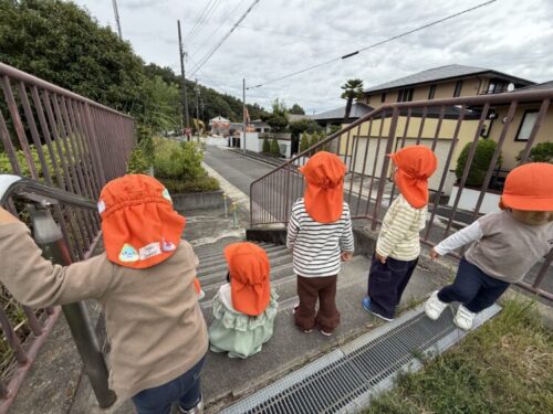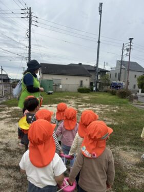 今日はパンダ公園にお散歩に行きました🏃♂️💨向かう途中で「ショベルカーいるかな❓」とショベルカーを見る気満々のあひる組です🦆