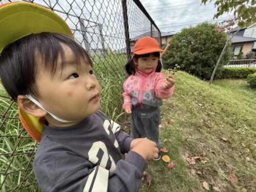 木の上に赤い木の実を発見💡「先生あれ取って‼️」と指を指します☝️「待っててねー」と木の実を渡すと大喜び😊保育園に帰るまでずっと手に持っていました☺️