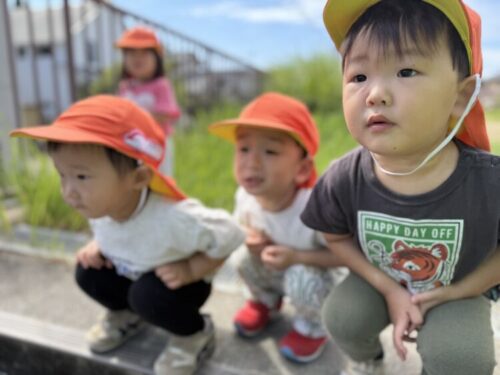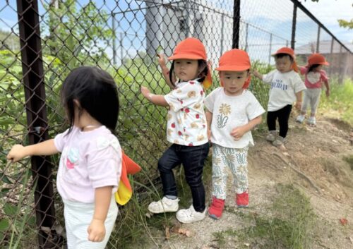 今日も「バッタさん探す‼️」と公園中を探します🔍急な坂もぐんぐん登り、みんなで並んで出発進行💨
