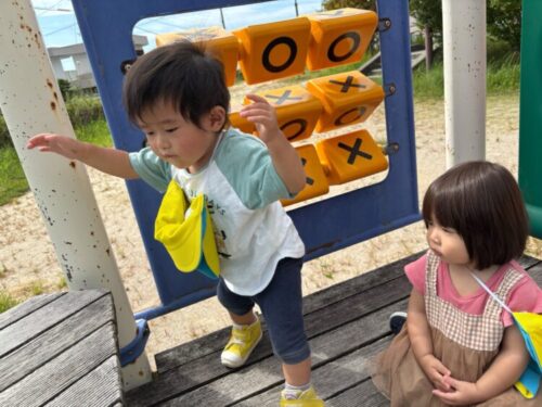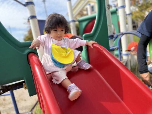 今日もすべり台で遊びます🛝保育者の手を借りずに1人ですべっていく姿に成長を感じます🥰