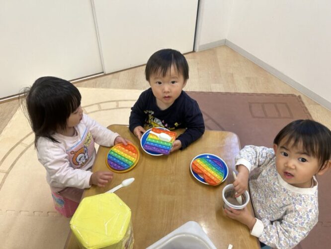 様々な物を見立てて、イメージを膨らませながら遊ぶあひるさんです🥹