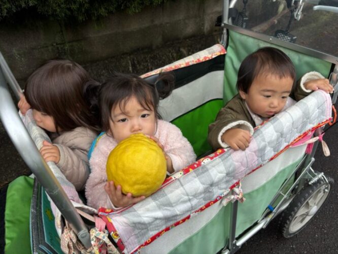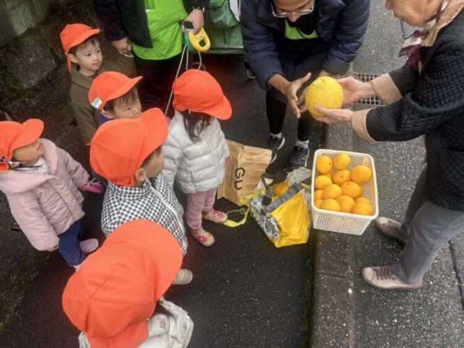 いつもお散歩で通るたびに「みかん🍊!!」「すっぱいかなぁ」「もう食べれる!」とお話しながら歩いていたお友だち。ご厚意で、保育園に持って帰らせていただきました🥹