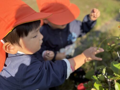 両手にブドウを持って大喜びのあひる組さん🦆「持って帰る‼️」とお茶を飲んで保育園に帰るまで、集中してブドウを取っていました🍇