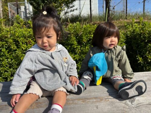 ひよこ組さんはベンチでくつろぎ中🛏️2人で仲良く座っている姿に思わずパシャリ📸