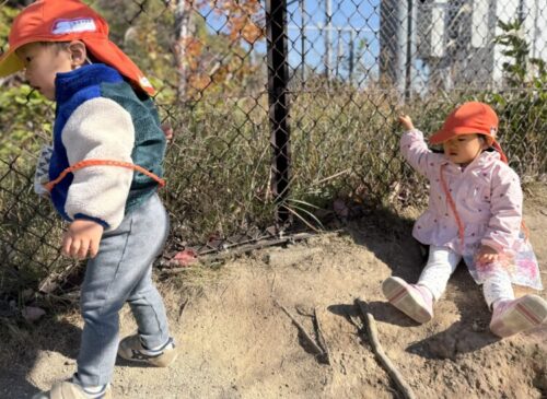 「ショベルカーいないねー」「ショベルカーお家帰っちゃったねー」とお友だち同士でお話をして、今日のショベルカー鑑賞会は終了です🏗️