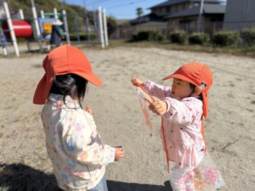 こちらも素敵な瞬間📸お友だちが落としてしまったカバンを「落ちてたよー‼️」と持ってきてくれました✨さらに、首に掛けてあげていました👏お姉さんな瞬間でした☺️