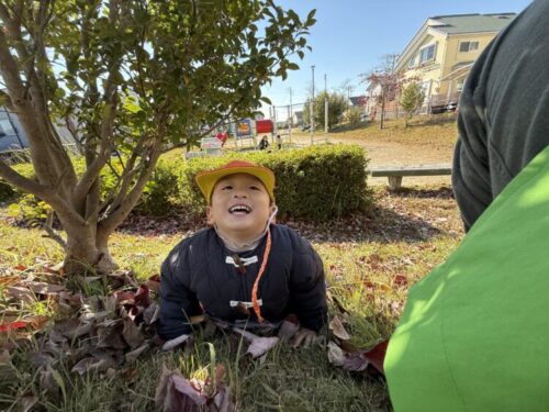 最後は、お山のすべり台🛝落ち葉がたくさん落ちていて、すべってて楽しい様子😊「もっとシューするの‼️」と何度も繰り返しすべっていました✨