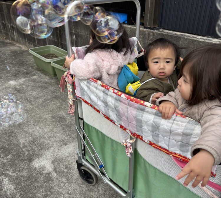 ひよこさんは室内探検したり、お外でシャボン玉遊びして過ごしました😊いっぱい泡🫧が出てきておもしろいね🤣