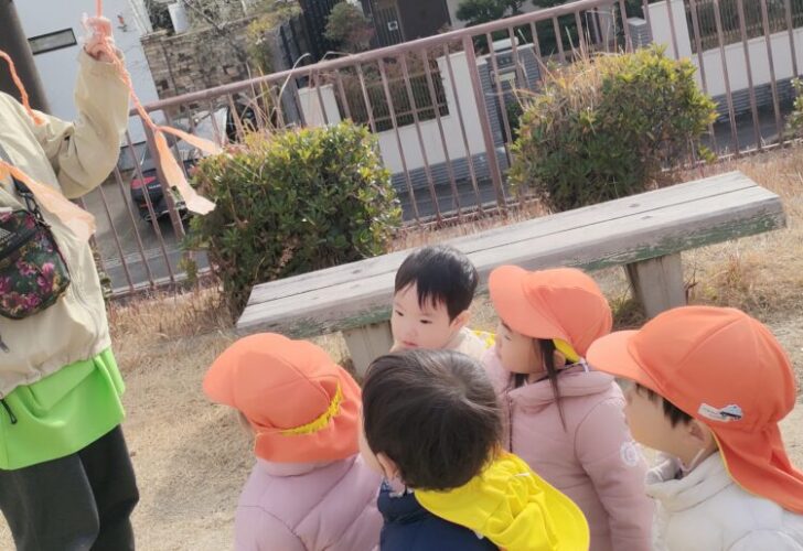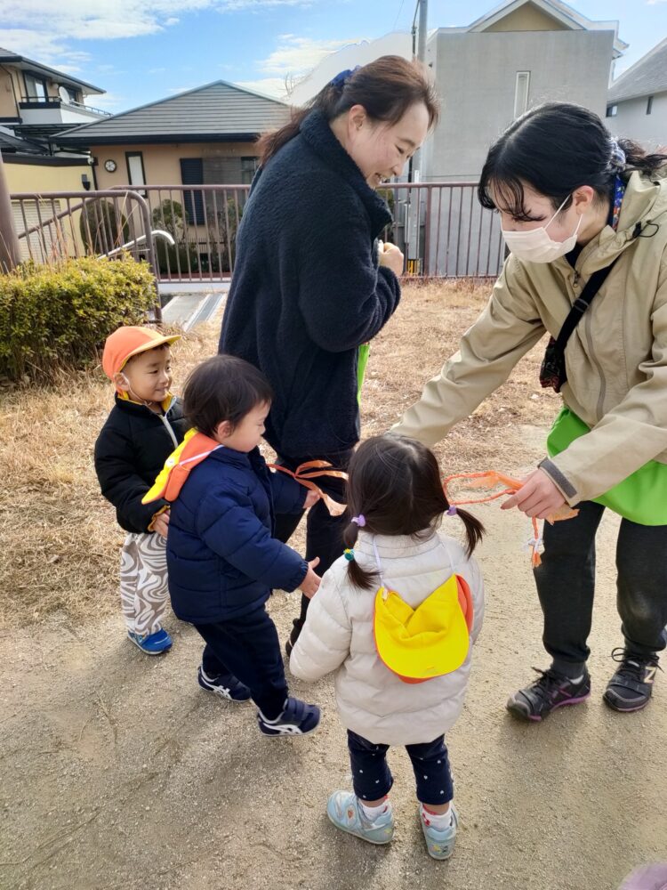 毎日寒いので、今日は公園でしっぽ取りで遊んでみました❣️説明をしっかり聞いているみんな☺️保育者のおしりにしっぽをつけて〜、みんなで待て待て〜💨いっぱい走って、ポカポカになりました🥰