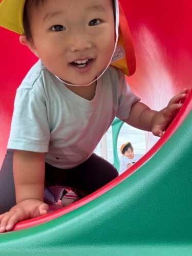0歳のお友だちと1歳のお友だち、仲良しさんです☺️