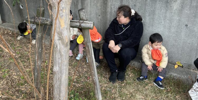 今日はあひるさんは植田山北公園ライオン公園に行きました🦁「ガオー公園だね」とお話ししながら、冷たい風が当たってもみんな元気に公園まで歩きましたよ