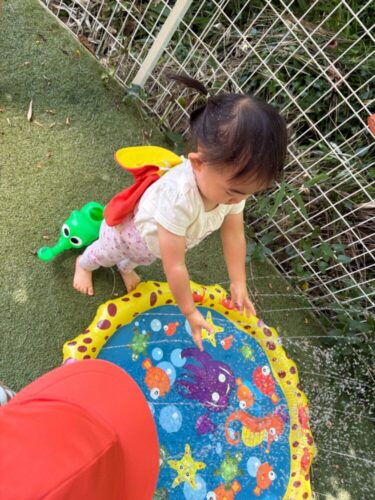 本日より新しい噴水のビニール遊具を用意しました✨子どもたちも一目散に遊びに走っていましたよ!