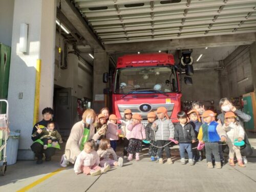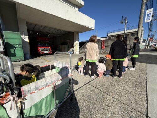 消防士さんと消防車にバイバイを済ませて、保育園に向かいます🏃‍♂️💨往復の長い距離をひよこ組さんも交代で歩き切ることができました👏