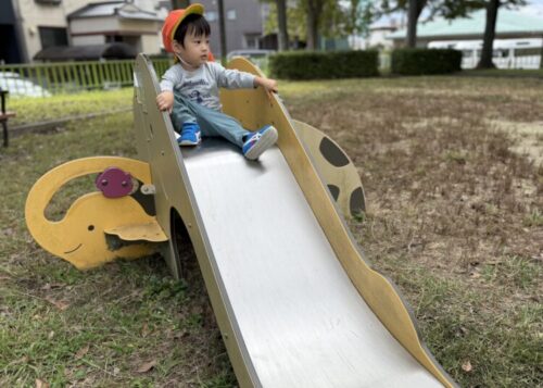 ひよこ&あひる組さんお気に入りのぞうさんすべり台🐘背が低いので、ひよこさんも自分で登って、一緒にすべることができます🙌