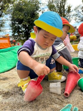 公園に到着🛝さっそくお砂場で遊ぶひよこ&あひるぐみ🐣🦆掘ったり、バケツやカップに砂を入れたりと大忙しです😊
