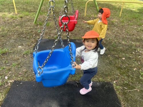 スイング遊具で遊びます🐝一生懸命自分で動かします👊