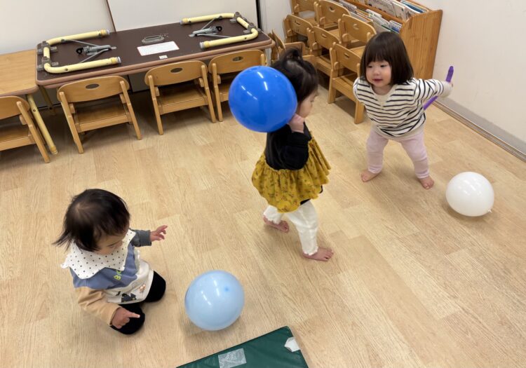 今日はひよこさんはお部屋でいっぱい体を動かしましたよ😊風船🎈でポンポン、弾むのおもしろいね😆