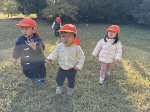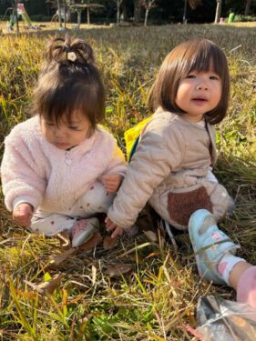 「バッタ探す‼️」とみんなで探検中、転んでしまったお友だち🏥お友だちのために、「痛いの痛いの飛んでけ〜」とヨシヨシしてあげる優しい場面がありました☺️