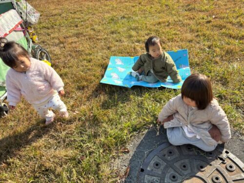 12月から入った新しいお友だちと一緒に裏山広場に到着です🛬マンホールが気になるひよこ組たち🐣