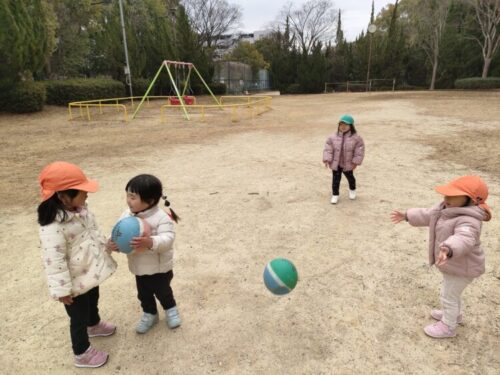 お友だちと一緒にボール投げ🏀「◯◯ちゃん行くよーー‼️」と投げる前に掛け声をする姿がとても可愛かったです💕