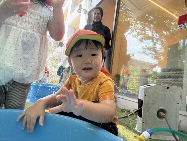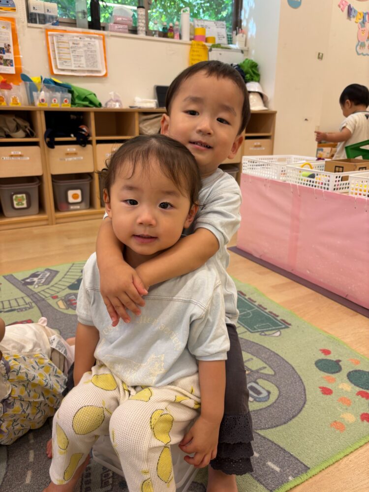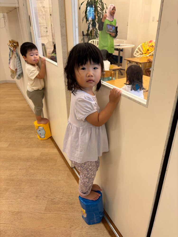 幼児さんのイングリッシュタイムが気になってのぞいているお友だち🔤
