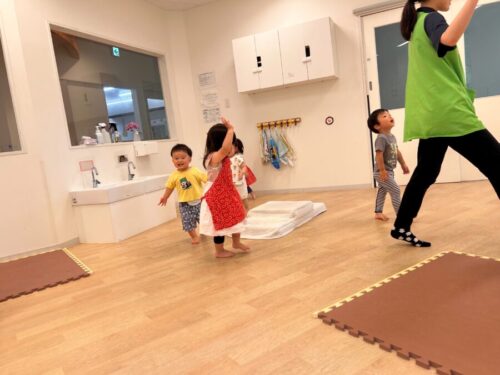 「ちょうちょ!」とリクエストがあり、みんなでチョウチョになりきってお歌を歌いました![]()