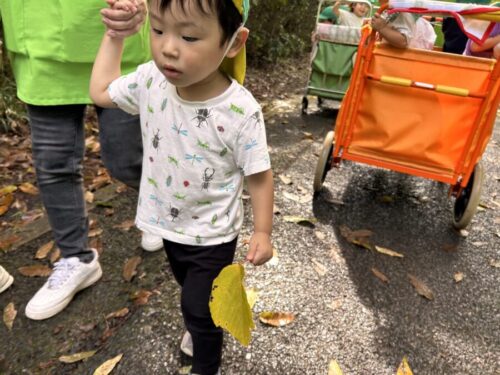 どんぐりを見つけると、「どんぐりころころ」の歌を歌うあひる組さん